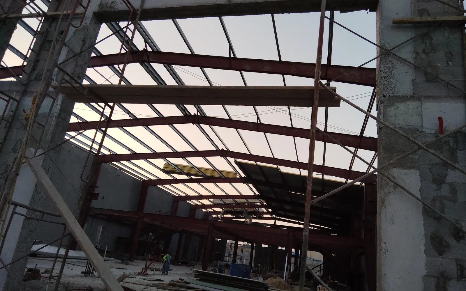 تنفيذ الهيكل الأساسي: تركيب الأرضيات والجدران والهياكل المعدنية بعناية.